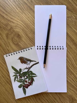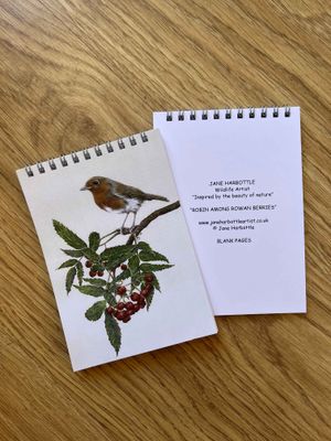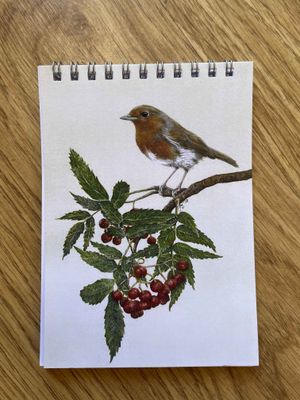 Robin among Rowan Berries Note Pad with quality unlined paper.